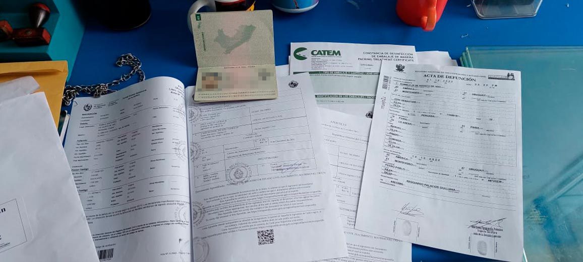 En Uruguay hay mas de 3, 000 peruanos que llegaron a ese país para cumplir metas personales o para un mejor futuro, nuestro ultimo caso es de un peruano fallecido en el hermano país de este sudamericano. Un familiar de él, nos contacto para cumplir los últimos deseos de llegar al Perú y ser enterrado en Piura su lugar de origen. Nuestro servicio consistió en la recepción del féretro al aeropuerto de Jorge Chávez y de ahí él envió a Piura vía área.